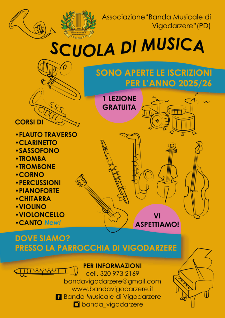 Qui troverai tutte le informazioni sul Gruppo Bandistico e ai relativi corsi della Scuola di Musica.